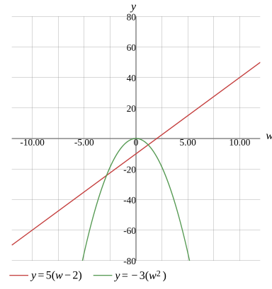 Substitute a=3,b=5 and c=−10 into the quadratic formula w=2a−b±b2−4ac